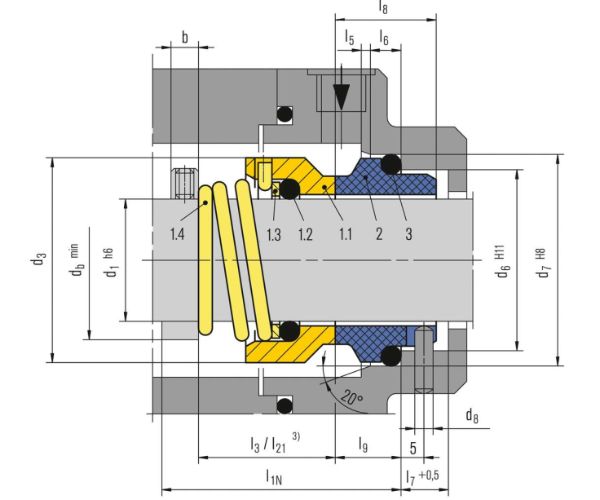 Phớt cơ khí EagleBurgmann M32N có kết cấu đơn phớt, lắp trong gồm các bộ phận chính sau: